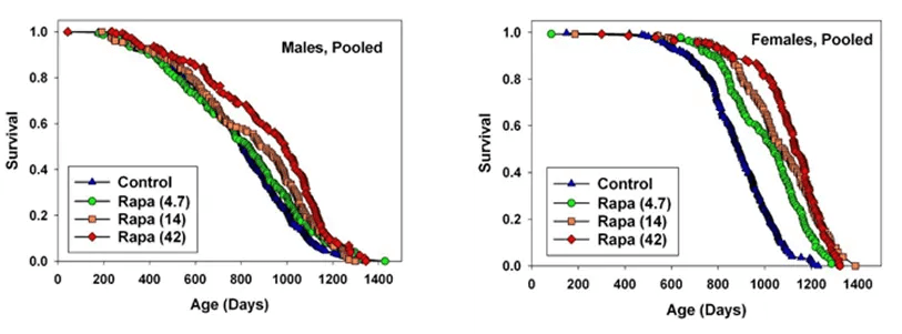 Miller RA, Harrison DE, Astle CM, Fernandez E, Flurkey K, Han M, Javors MA, Li X, Nadon NL, Nelson JF, Pletcher S, Salmon AB, Sharp ZD, Van Roekel S, Winkleman L, Strong R. Rapamycin-mediated lifespan increase in mice is dose and sex dependent and metabolically distinct from dietary restriction. Aging Cell. 2014 Jun;13(3):468-77. doi: 10.1111/acel.12194. Epub 2014 Feb 9. PMID: 24341993; PMCID: PMC4032600.